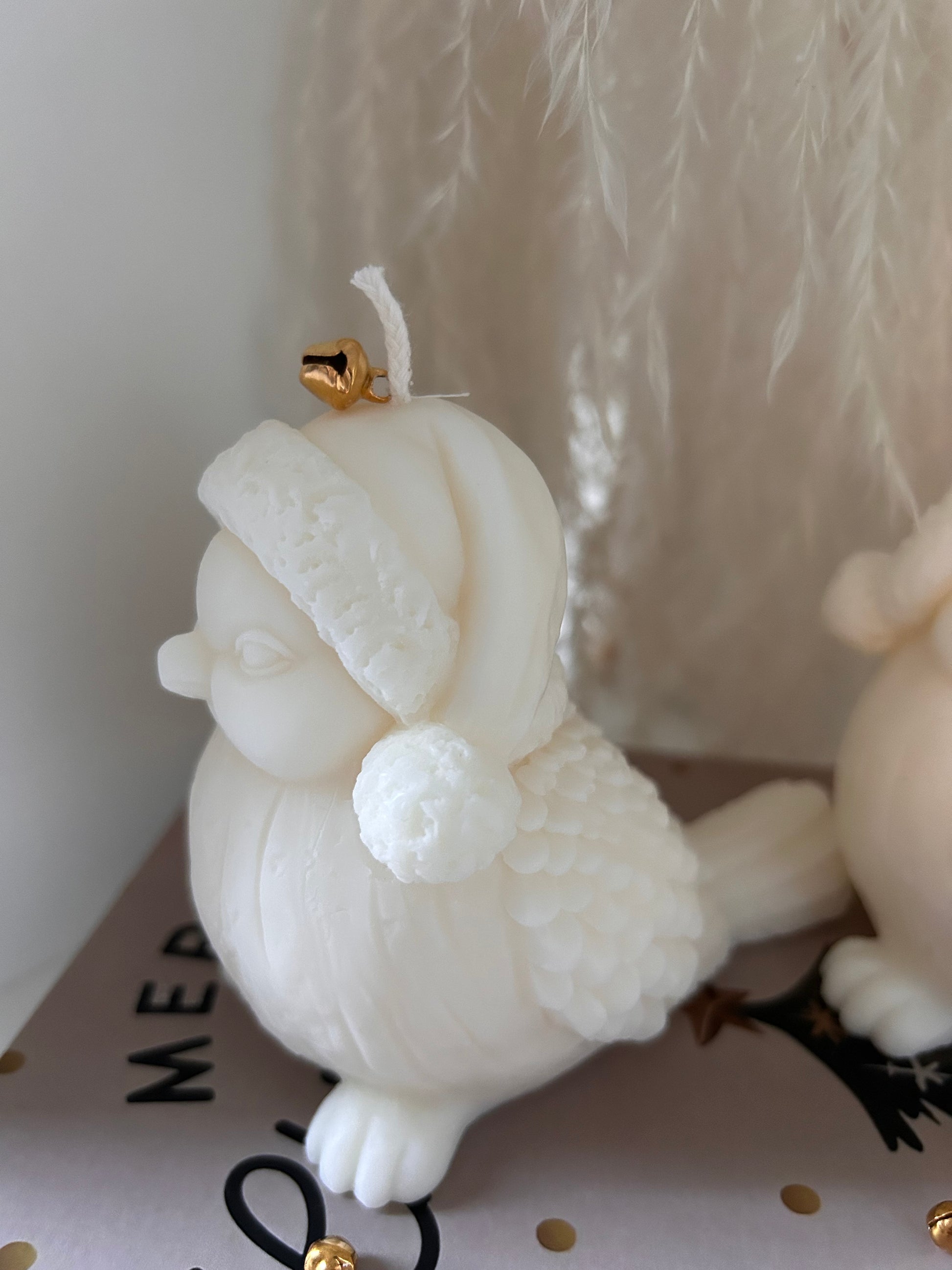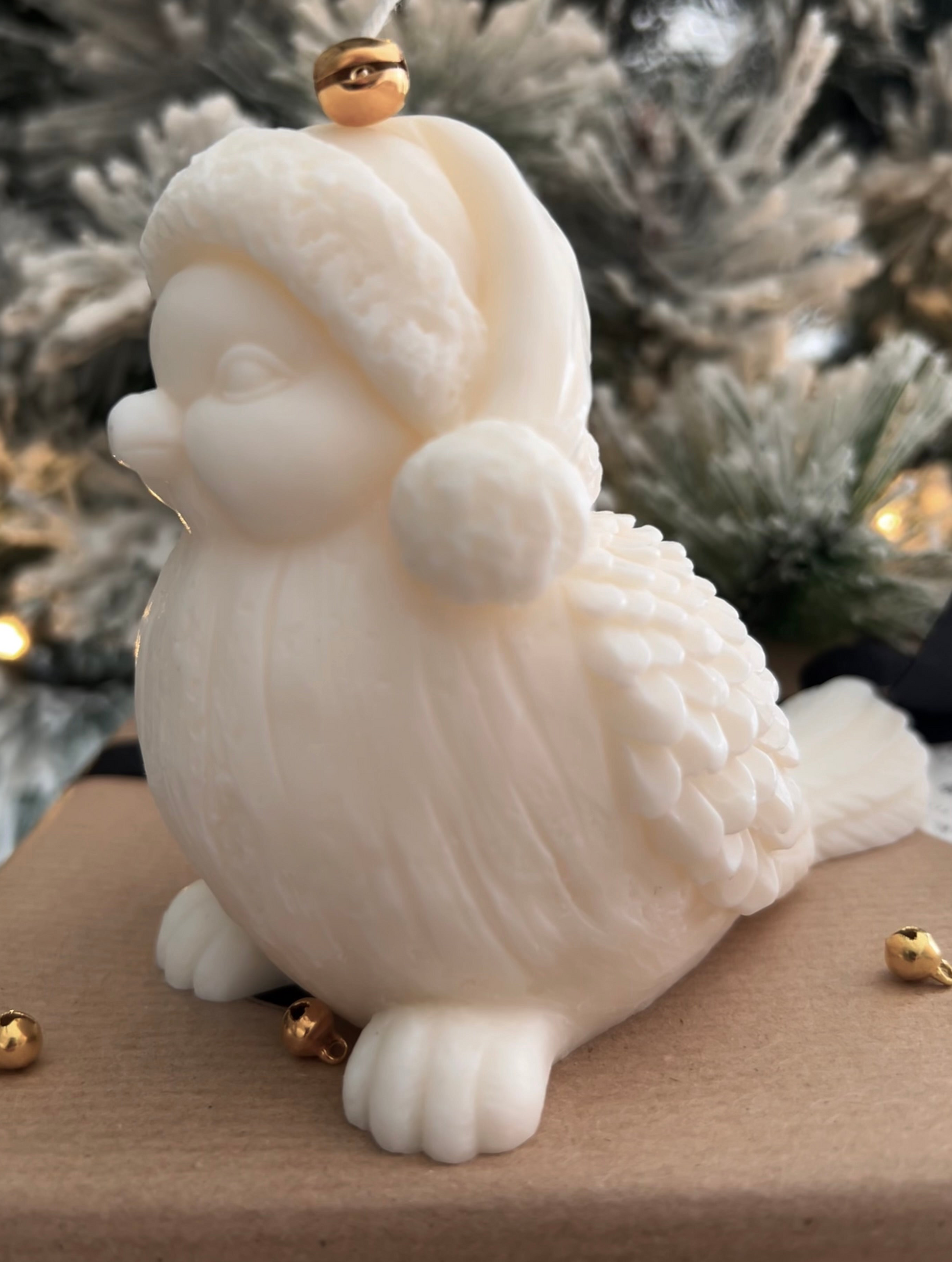 Découvrez BIRDY POLAIRE, un oiseau sculpté en cire de soja portant un petit bonnet hivernal, avec des détails délicats et raffinés. Cette bougie artisanale apporte une ambiance cocooning et chaleureuse à votre décoration d’hiver, tout en ajoutant une touche poétique à votre intérieur. Idéale comme élément décoratif ou comme cadeau raffiné pour les fêtes.