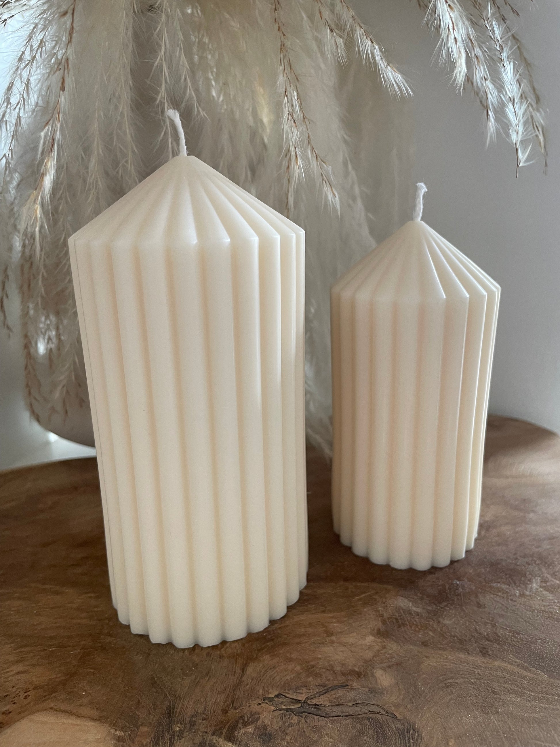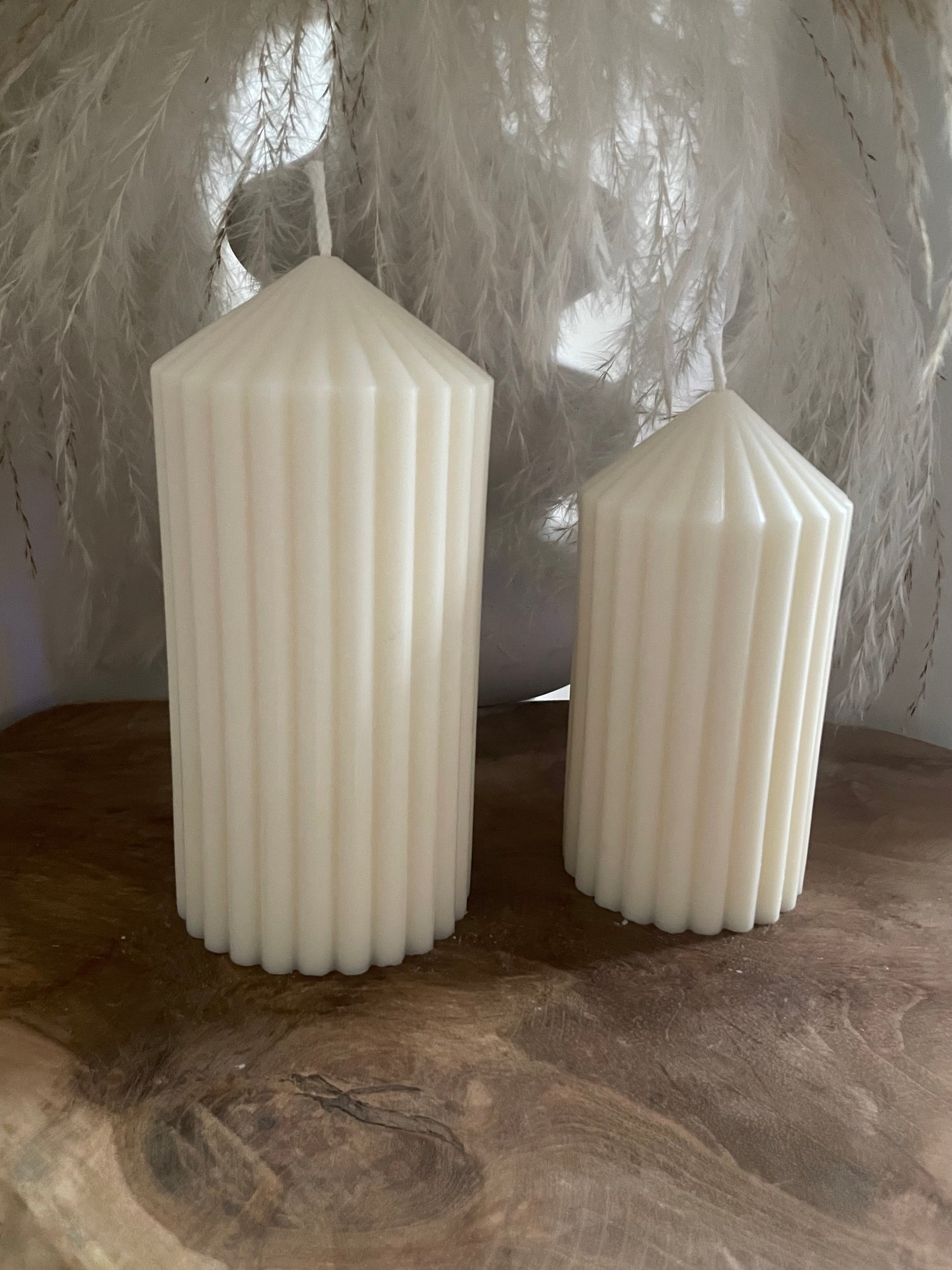Notre bougie PILLAR séduit par ses nervures sculptées et sa silhouette architecturale.