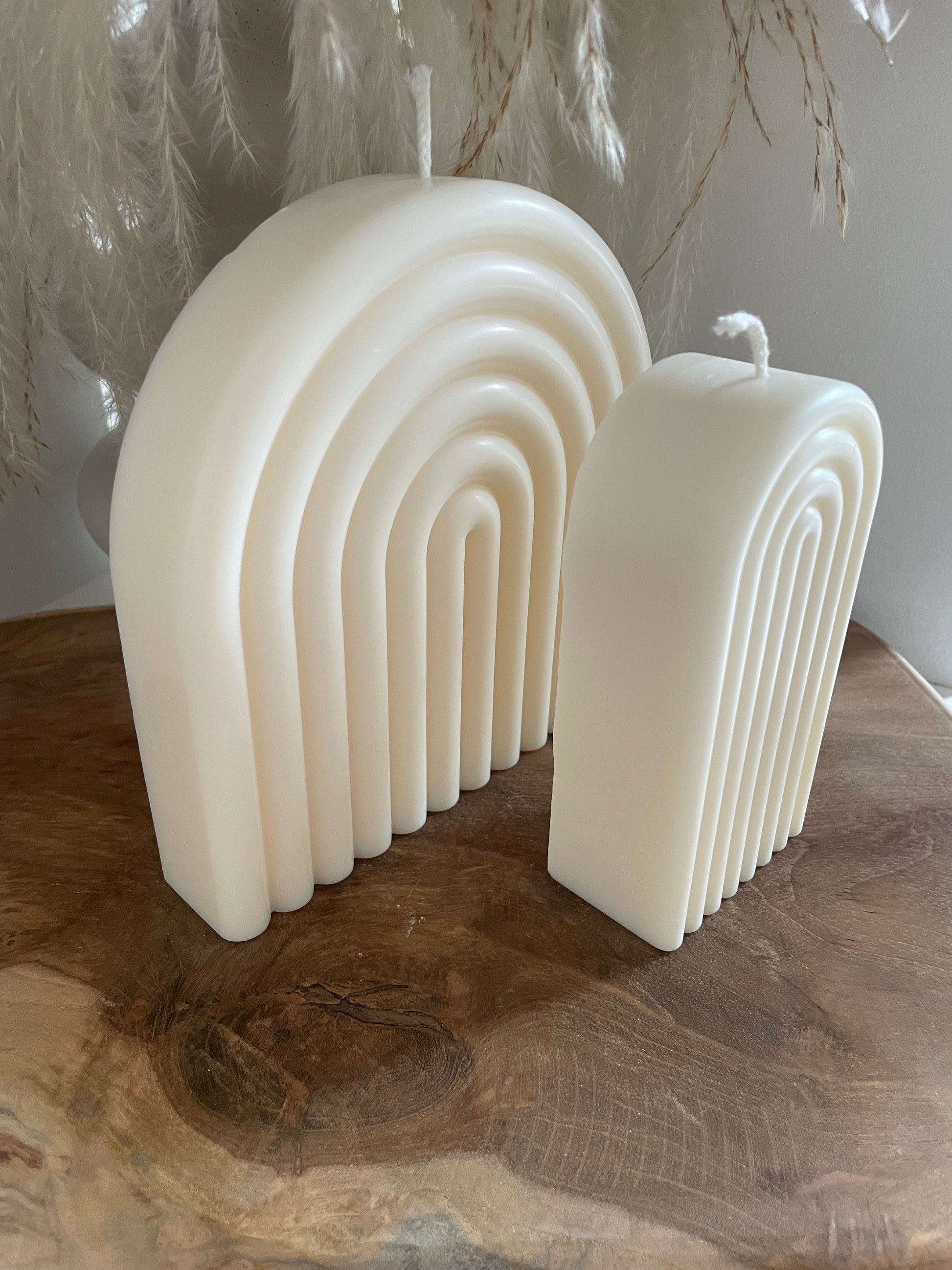 Notre Bougie RAINBOW s’inspire de la forme douce d’une arche et de la symbolique de l’arc-en-ciel.