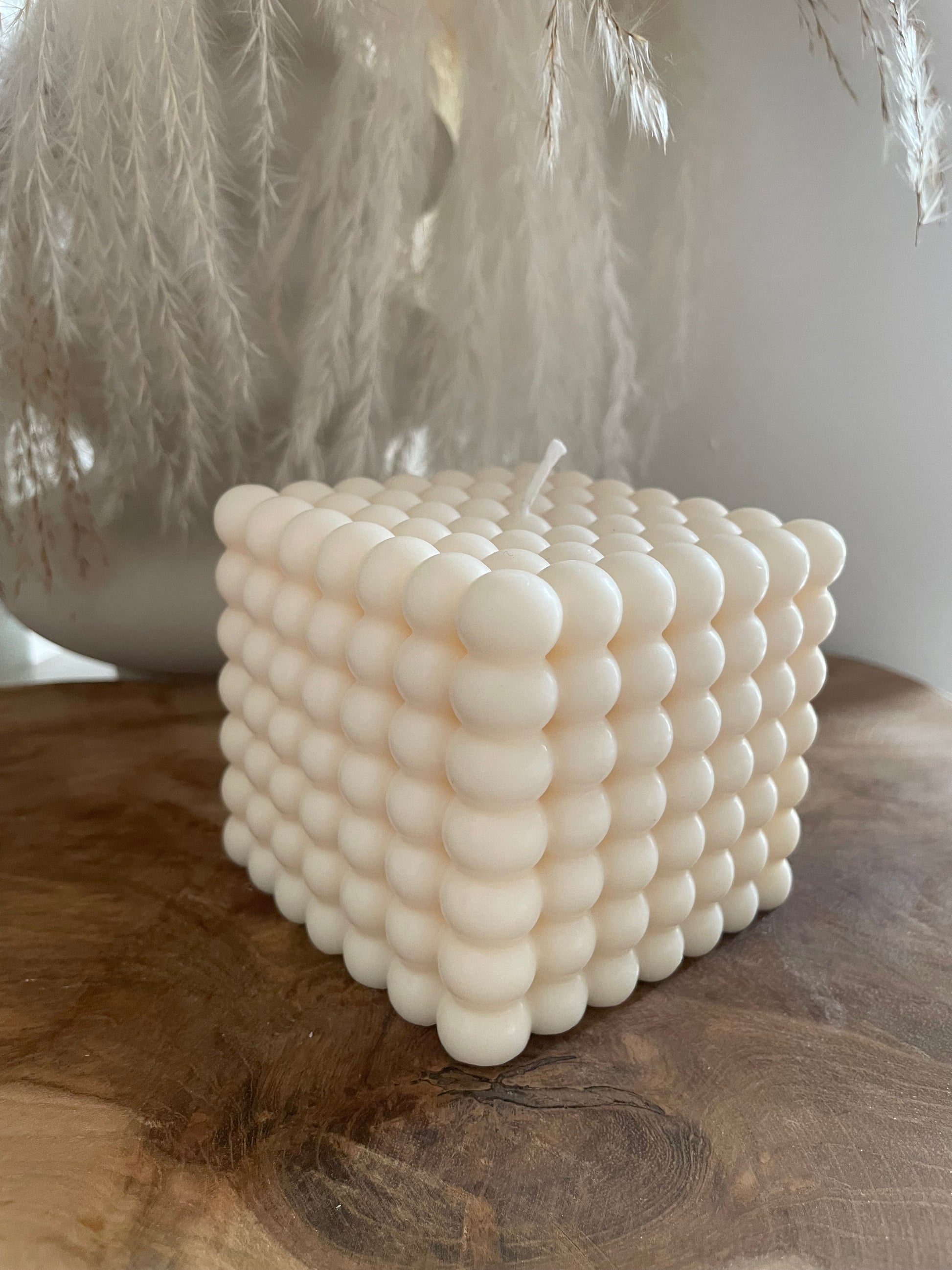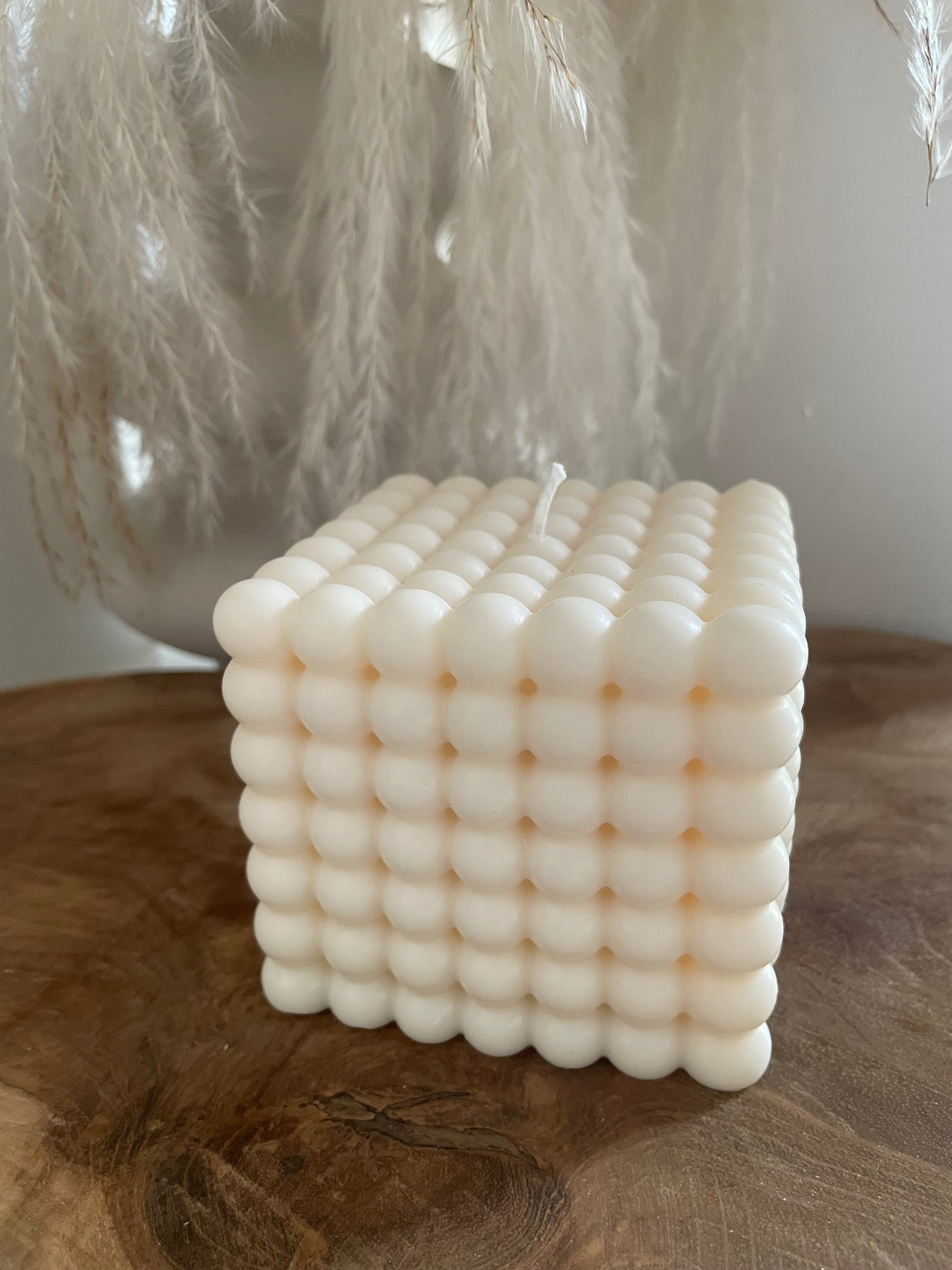 RUBIKS est une bougie sculpturale en forme de cube, composée de perles lisses empilées. Son design graphique apportent une touche moderne et apaisante à votre intérieur.
