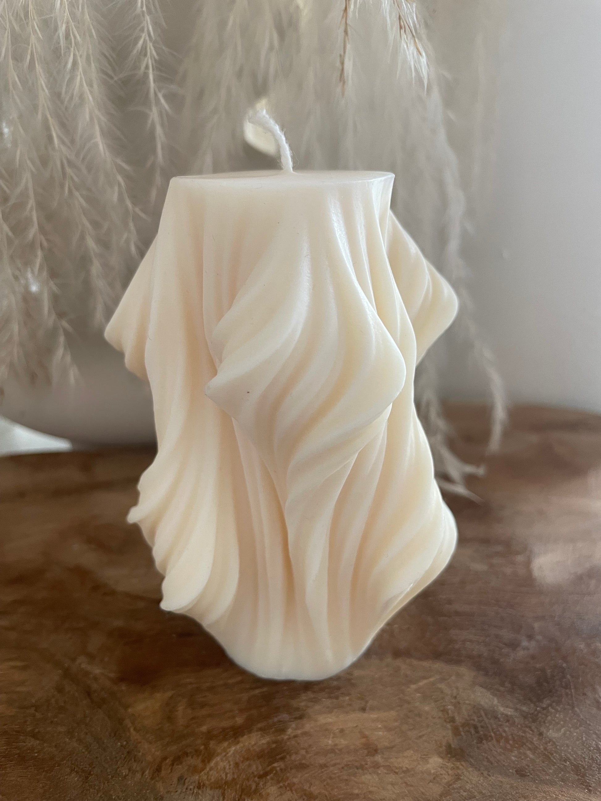La forme élancée et délicate de notre bougie Plume évoque la douceur et la liberté d’une plume portée par le vent.