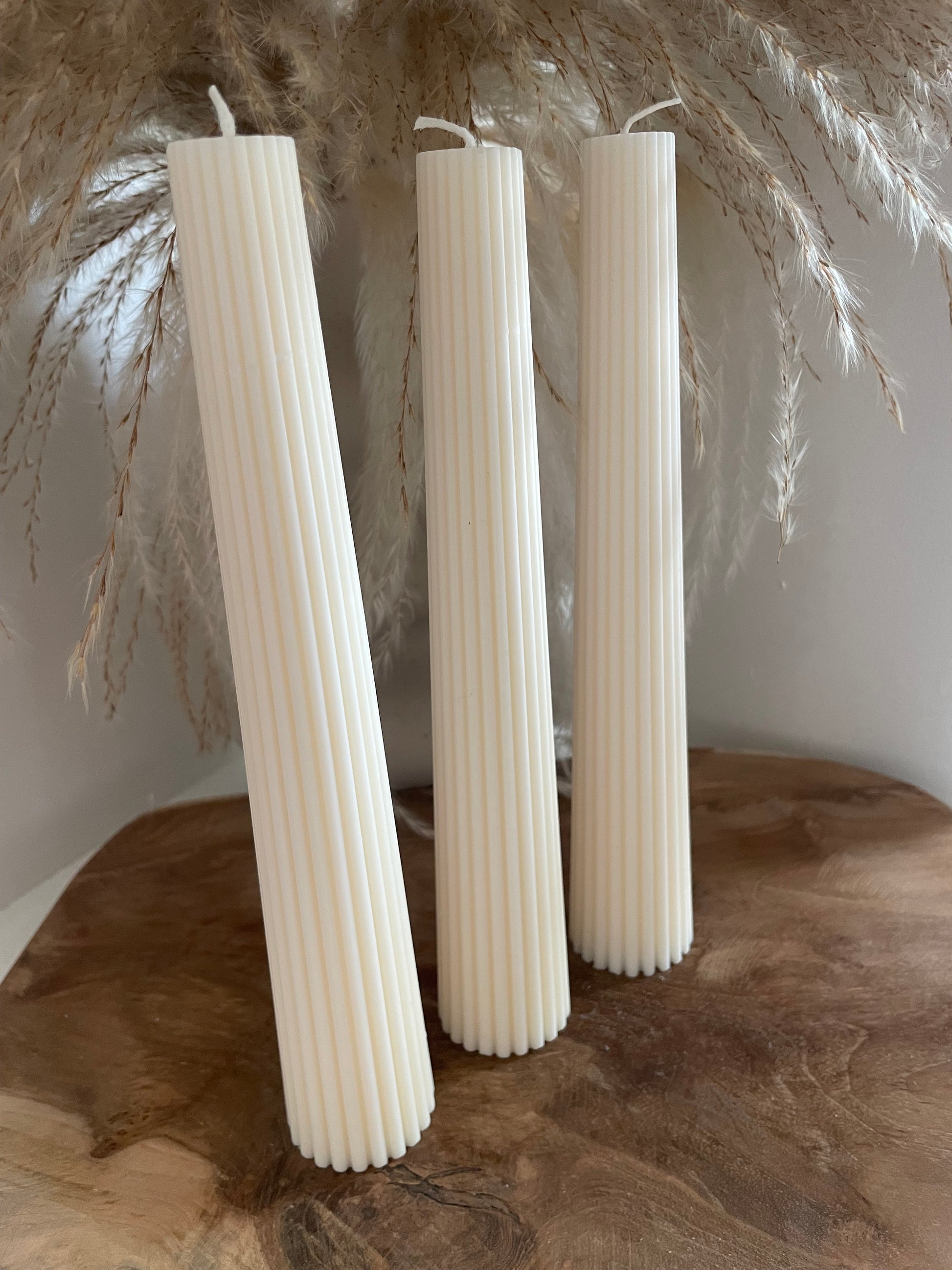 Fine et graphique, cette chandelle en forme de CÔNE aux délicates cannelures apporte une touche sculpturale et contemporaine à votre décoration.