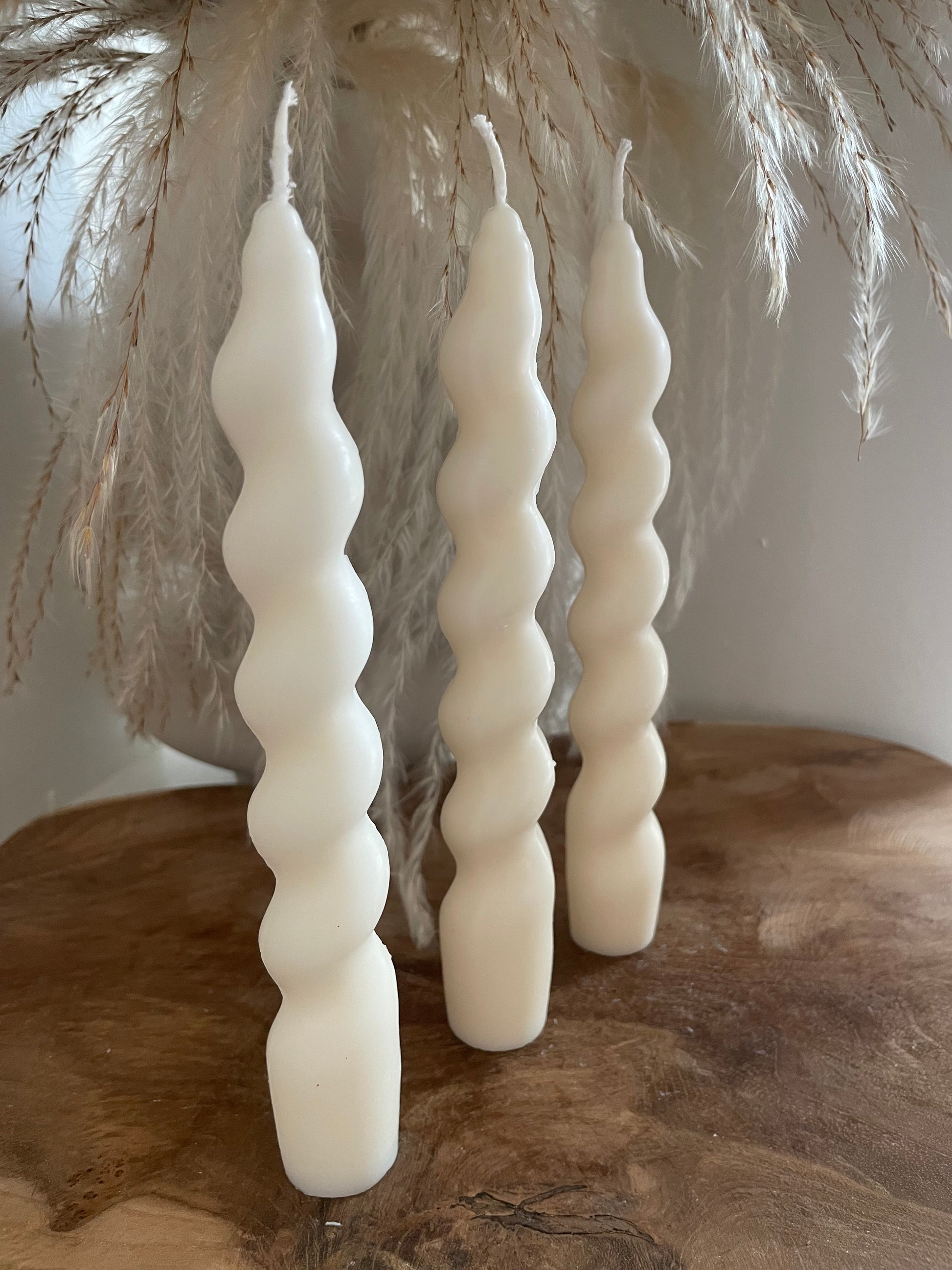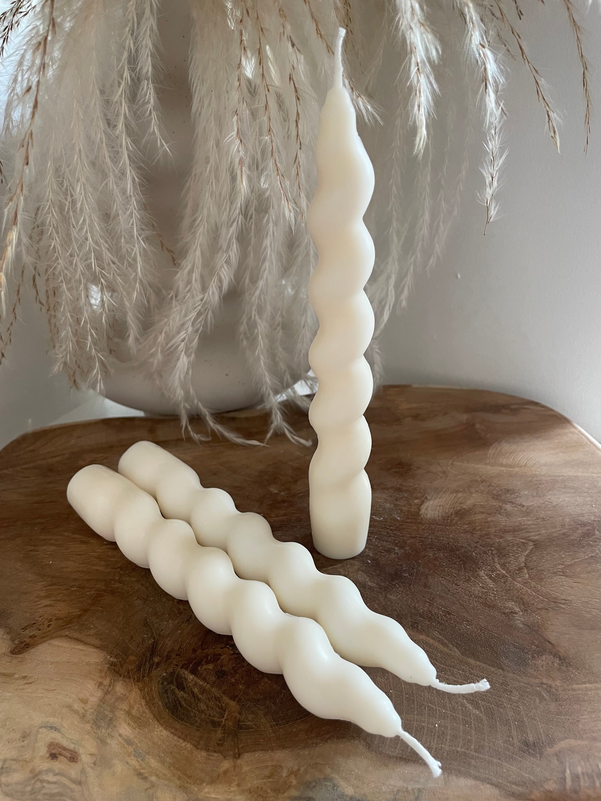 Élancée et délicatement torsadée , cette chandelle TORSADE en cire de soja naturelle , non parfumée, convient parfaitement aux intérieurs sensibles ou à ceux qui recherchent une ambiance pure et minimaliste.