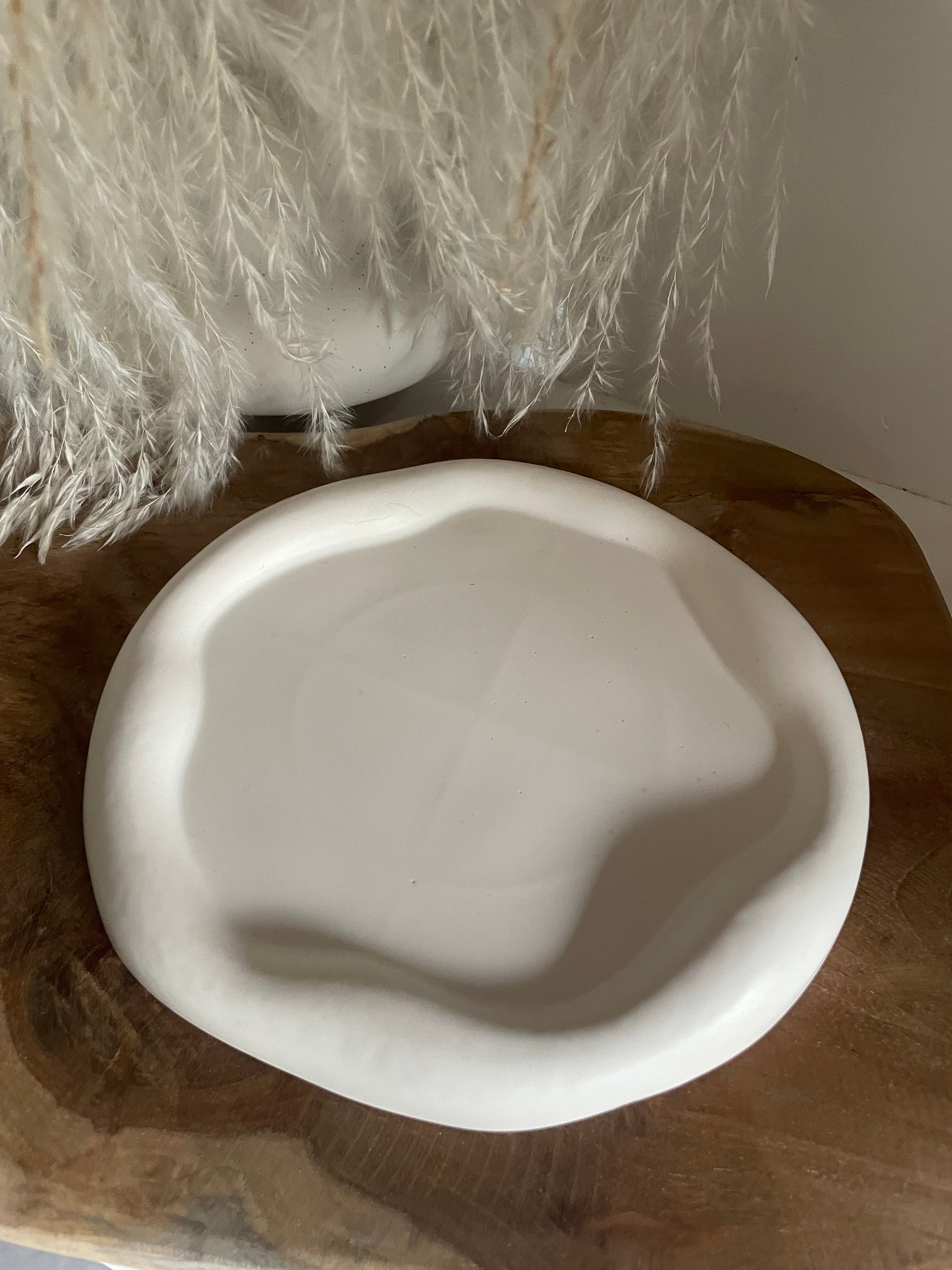 Sculpté en jesmonite, ce plateau aux lignes fluides et irrégulières évoque la légèreté d’un nuage. Sa teinte douce et sa finition mate en font un objet à la fois discret et raffiné, idéal pour accueillir vos bijoux, vos bougies ou vos petits trésors du quotidien.