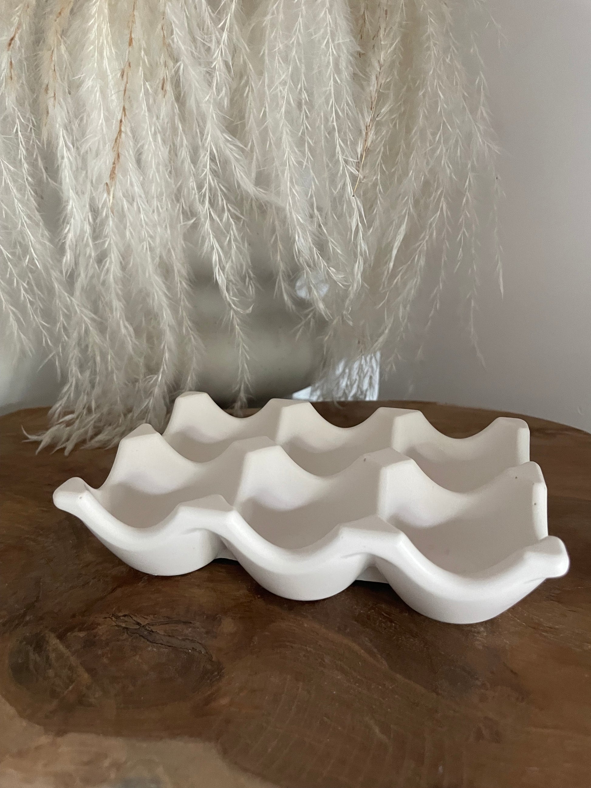 Pratique et esthétique, ce plateau en Jesmonite accueille jusqu’à 6 œufs avec élégance. Sa texture minérale et sa forme épurée en font une pièce à la fois fonctionnelle et décorative, parfaite pour la cuisine ou la table du petit-déjeuner.